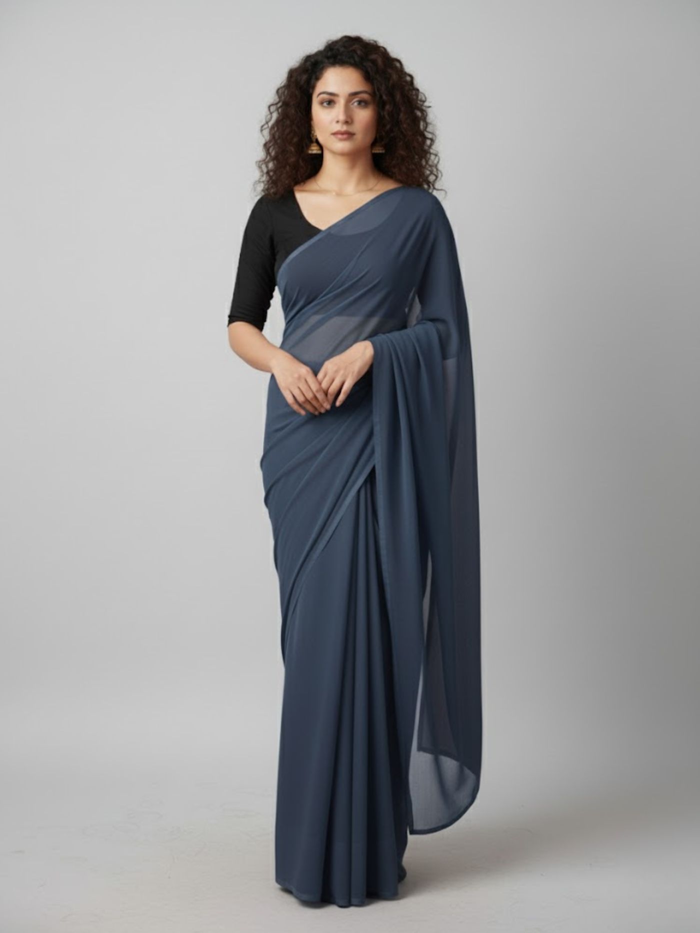 A timeless design that radiates effortless elegance for any occasion. Crafted from premium georgette, this saree offers durability with a lightweight, flowing texture—perfect for all-day comfort. Designed for easy, one-minute draping, it’s ideal for casual gatherings and formal events alike, blending simplicity with sophistication. This versatile classic is a chic and dependable addition to your wardrobe, adding a modern twist to a traditional favorite.