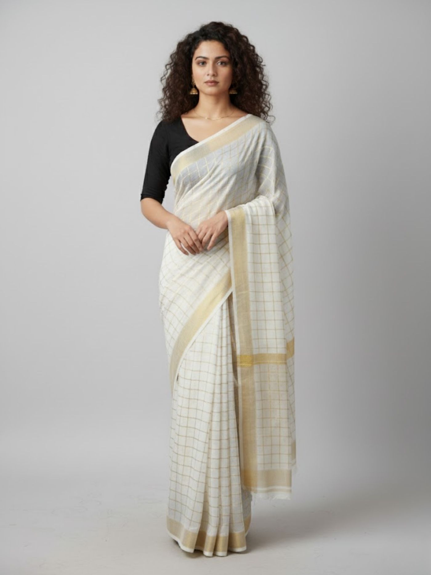 White Gold Line Cotton Silk Ready to Wear One Minute Saree