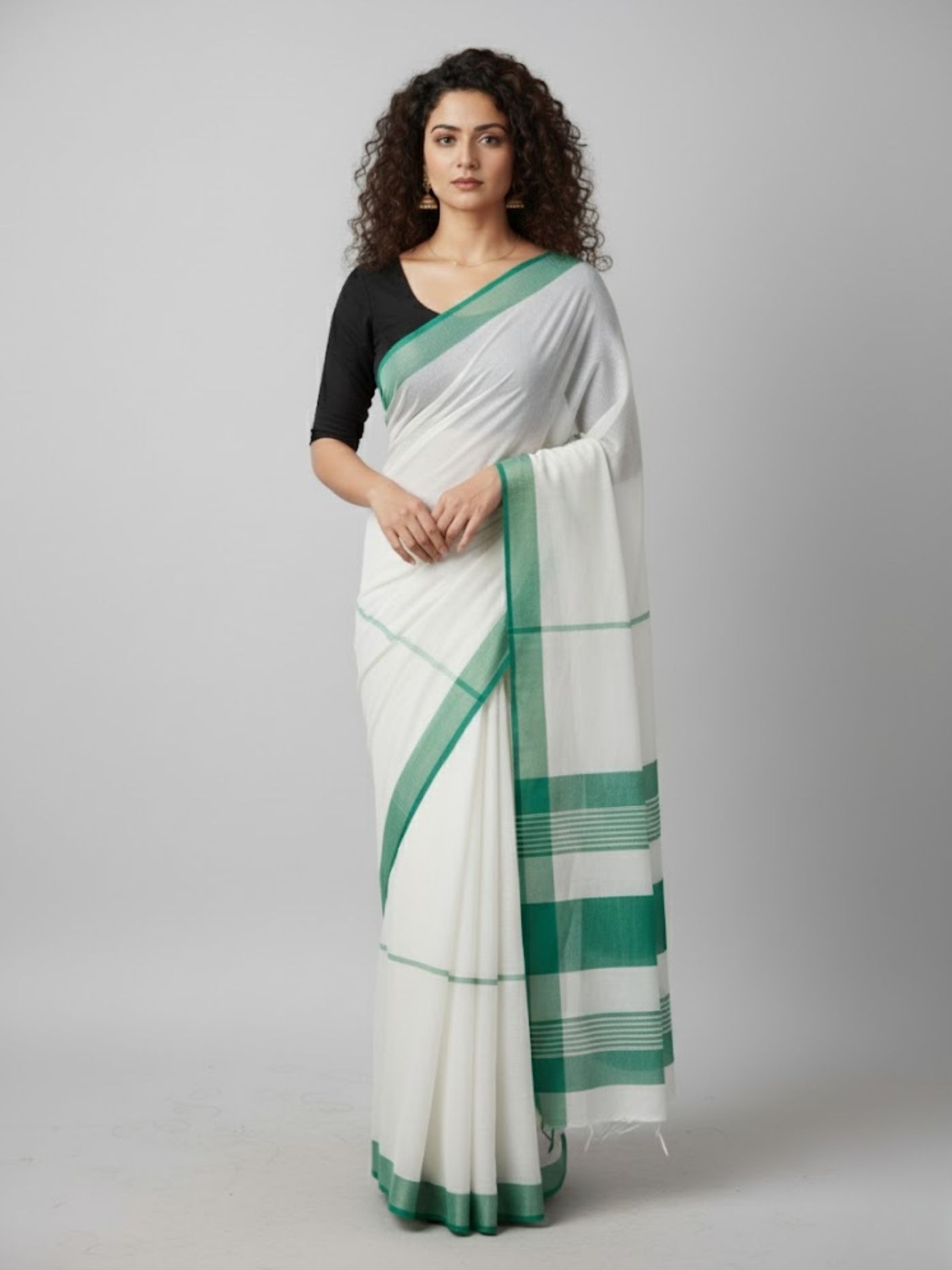 Be the first to review “White Green Cotton Ready to Wear One Minute Saree” Cancel reply